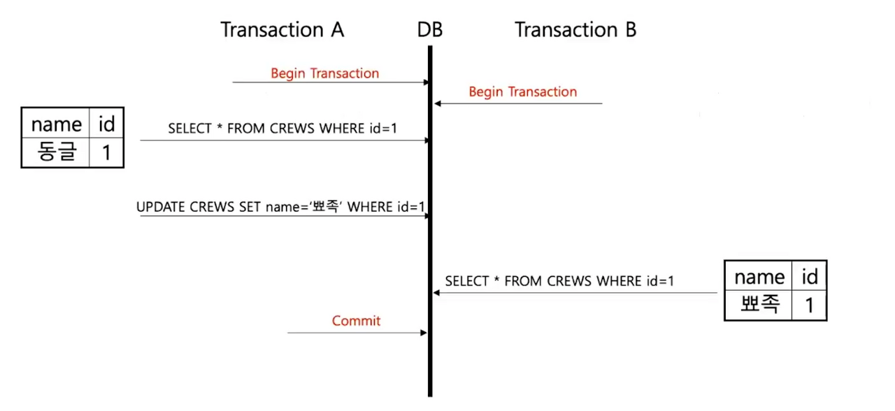 그림을 보면 트랜잭션 A가 아직 커밋되지 않은 상태에서 트랜잭션 B가 DB를 조회했습니다. 커밋되지 않고 변경된 트랜잭션 A의 값을 조회하는것을 볼 수 있습니다.