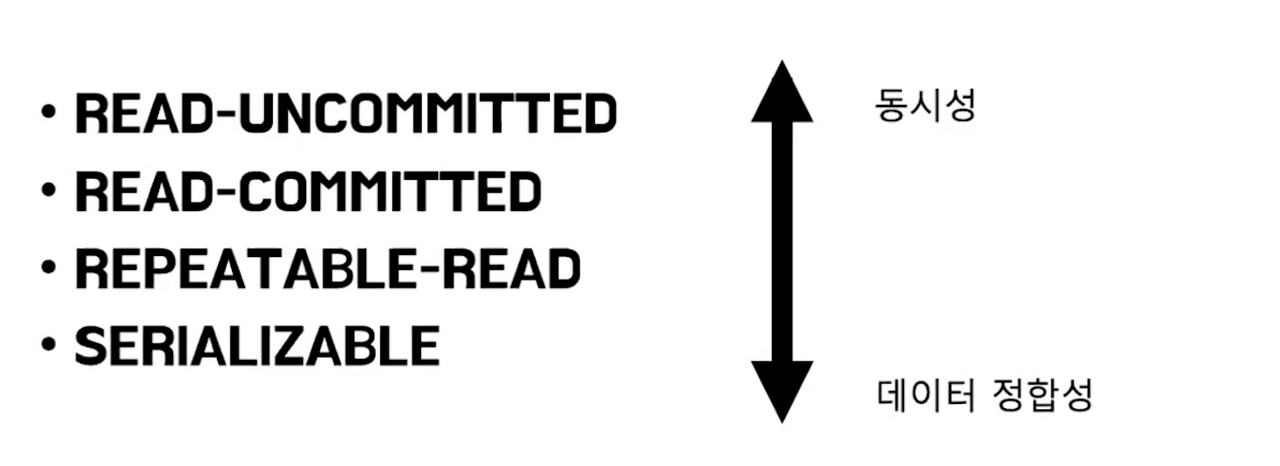 - 구매자의 계좌에서 돈이 빠져나가고 판매자의 계좌에 돈이 아직들어가지 않은 DB상황을 다른 트랜잭션이 조회하면 안됩니다.
