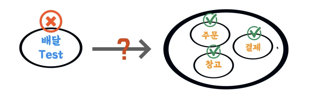 Sociable Unit 중 배달에 대한 테스트는 깨지는데 협력 객체 들의 테스트는 모두 통과하는 경우입니다. 분명 버그가 있다는 것을 알지만 협력 객체의 테스트가 모두 통과하기 때문에 디버그 하기 곤란한 상황입니다.