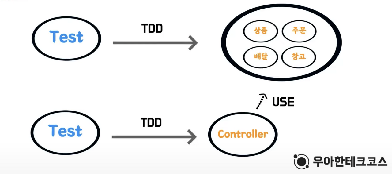Controller TDD 를 진행함에 있어서도 실제로 구현되어 있는 도메인 집합을 사용하게 됩니다.