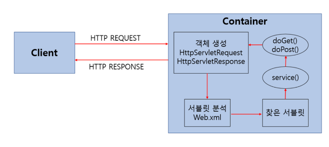 우리가 서버에 서블릿을 만들었다고 해서 스스로 작동하는것이 아니고 서블릿을 관리해 주는것 이 필요한데 그러한 역할을 하는것이 서블릿 컨테이너이다.