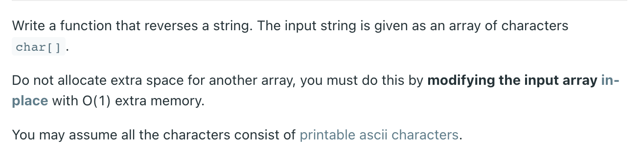 여기서 주의사항은 공간복잡도가 O(1)이므로 새로운 변수를 추가하면 안된다는 것이다. 파이썬으로는 쉽게 풀이 할 수 있다.