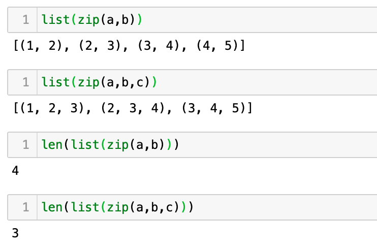 zip()은 2개 이상의 시퀀스를 짧은 길이를 기준으로 일대일 대응하는 새로운 튜플시퀀스를 만드는 역할을 한다. 밑의 사진을 예시로 설명해보겠다.