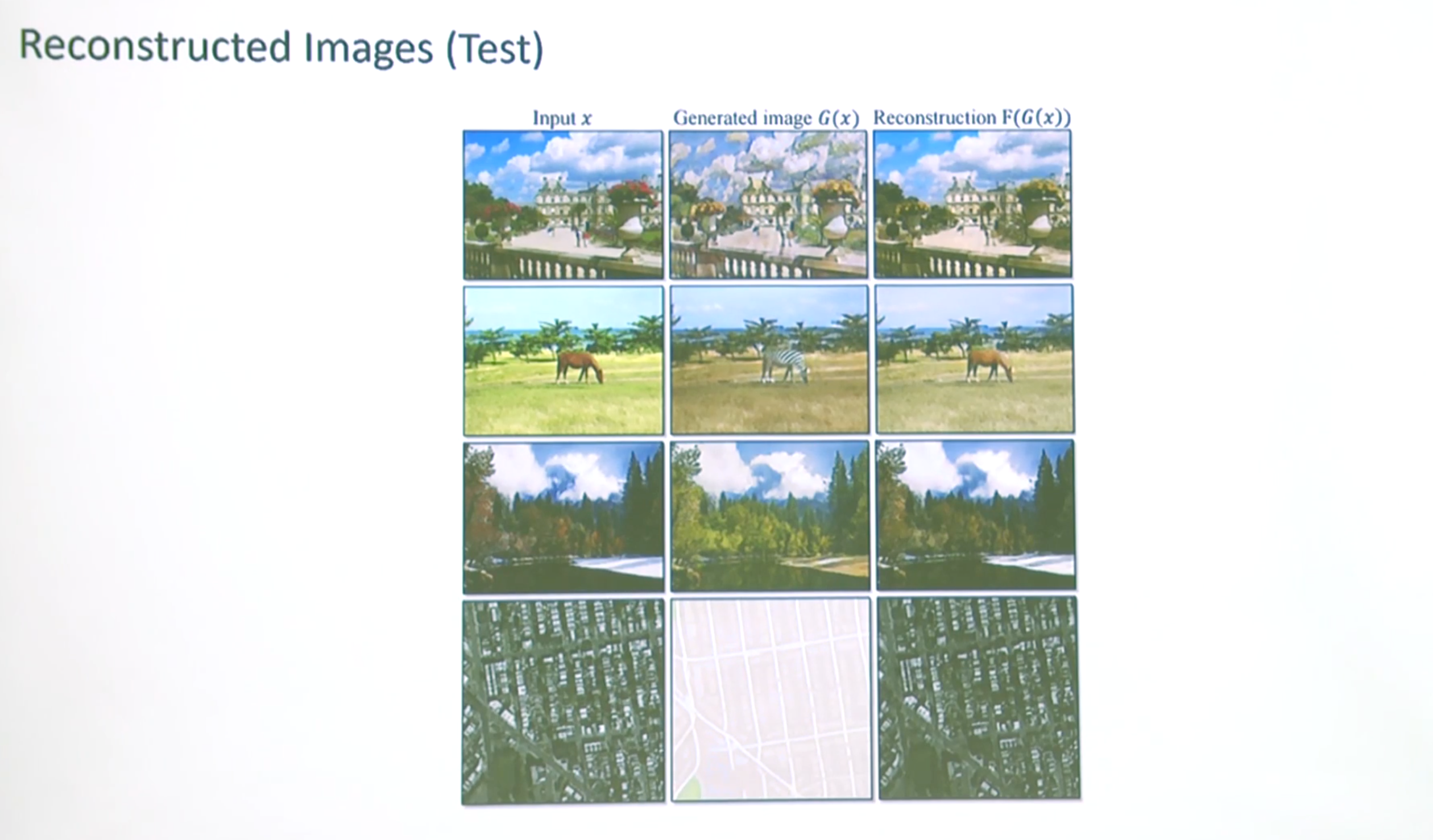 여기서 생각을 해볼 수 있는게 그럼 생성된 결과물을 즉 왼쪽에 있는 것이 모네의 그림(정확히 얘기하면 실제그림과 CycleGAN으로 산출된 결과물)이고 오른쪽에 있는것이 실제 사진(정확히 얘기하면 실제사진과 CycleGAN으로 산출된 결과물)이라고 했을 때 이를 한번더 Cycle을 연결하면 더 좋은 결과물을 얻을 수 있지 않을까? 라는 궁금증이 떠오를텐데 저자의 답변으로는 그렇지 않다고 한다. input의 이미지가 이미 너무. 오염되었기 때문이라고.......