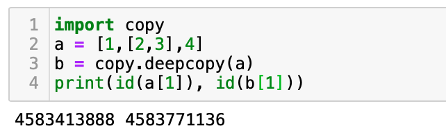 리스트 안의 리스트의 주소값은 같다! 따라서 이와 같은 얇은 복사를 방지하기 위해 copy.deepcopy를 사용하면 복잡하게 중첩된 리스트도 문제 없이 복사된다.
