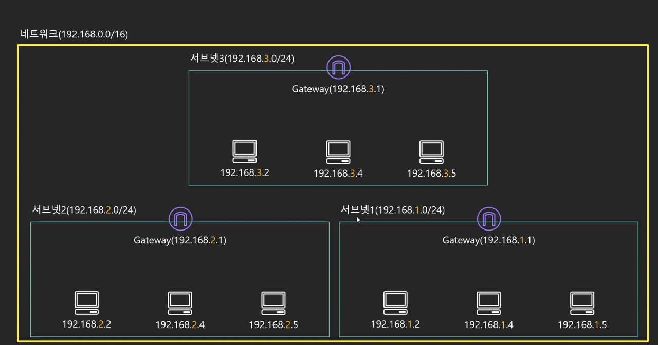 - 여러개의 사설망을 구축하기 위해 망을 나누는 방법